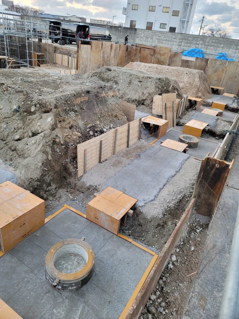基礎 ゲタ、梁底架け 過去の現場 Twitter Facebook はてブ Pocket LINE コピー 2022.01.26 2022.01.25 2026年1月 月 火 水 木 金 土 日 1234 567891011 12131415161718 19202122232425 262728293031 « 2月 なるべくサポートを使用しました。 根切りの高さが図面と違ったので車にベニヤを積んでB梁底を現場加工しました泣。ボイドの穴はマキタ18Vジグソーで綺麗に早くカットする事が出来ました。 B梁にボイド 1200ピッチ以内で施工のようです。 解体しやすいように梁底に鋸目を入れてます。 Follow me! FacebooktwitterHatenaPocketCopy